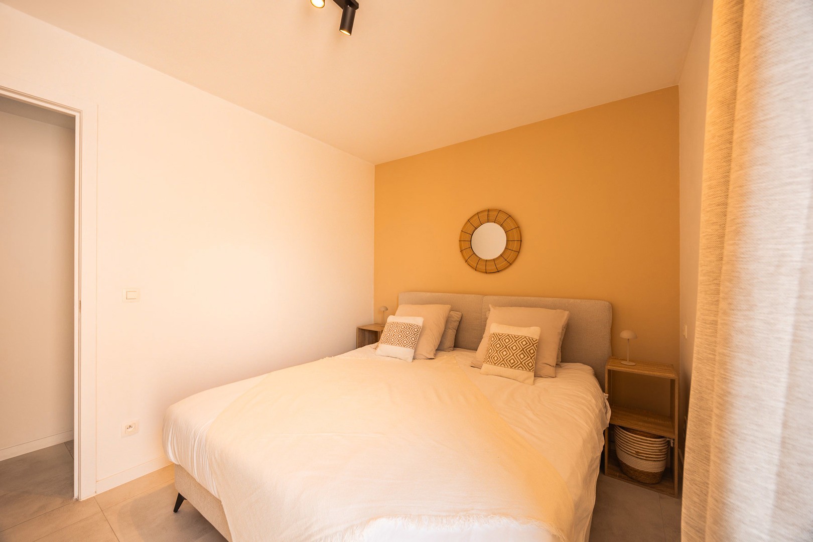 Het appartement beschikt over een lichtrijke leefruimte die naadloos aansluit op het aangename terras, waar u in alle rust kunt genieten. De indeling is uiterst praktisch met twee volwaardige slaapkamers en een eigentijdse badkamer voorzien van een douche. Daarnaast is er een apart toilet aanwezig voor extra privacy. Het gebouw is ook voorzien van een lift.