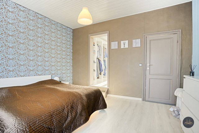 Via een nieuwe trap van 2020 komen we op de eerste verdieping terecht waar we 2 grote slaapkamers (1 is nu een dressing) terugvinden.