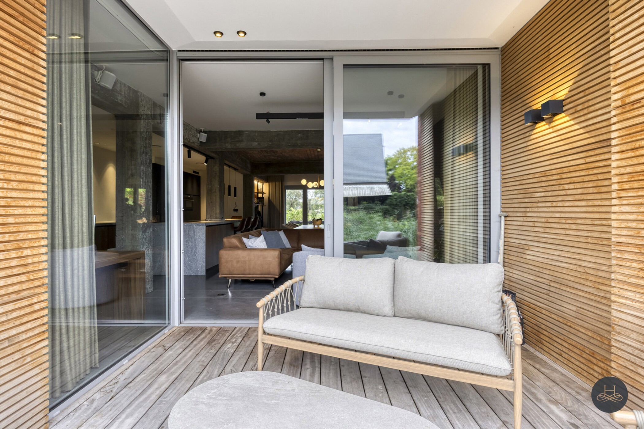 De grote raampartijen zorgen voor overvloedig licht en versterken het open gevoel.